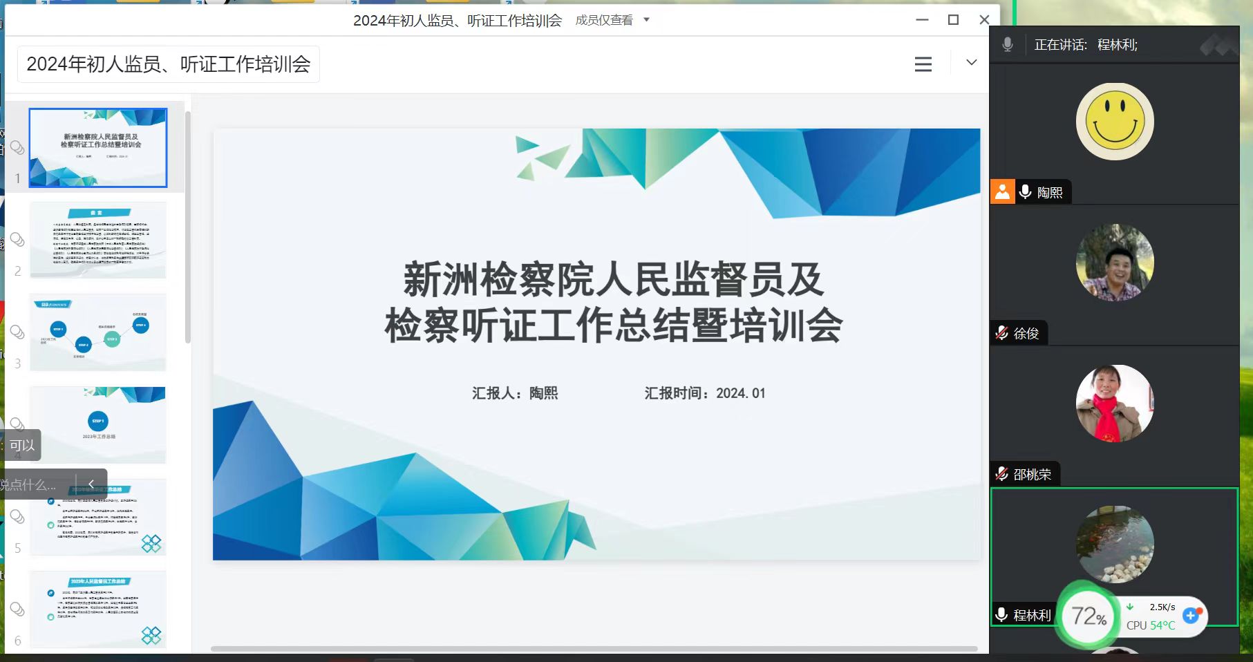 本网讯(通讯员:陶熙)为扎实推进新洲区检察院人民监督员工作,为人民监督员监督检察办案活动提供更好的服务和更优的保障,1月16日,新洲区检察院组织召开2024年人民监督员及检察听证工作总结培训会。本次培训通过线上视频会议的方式举行,全体人民监督员、听证员参加会议。