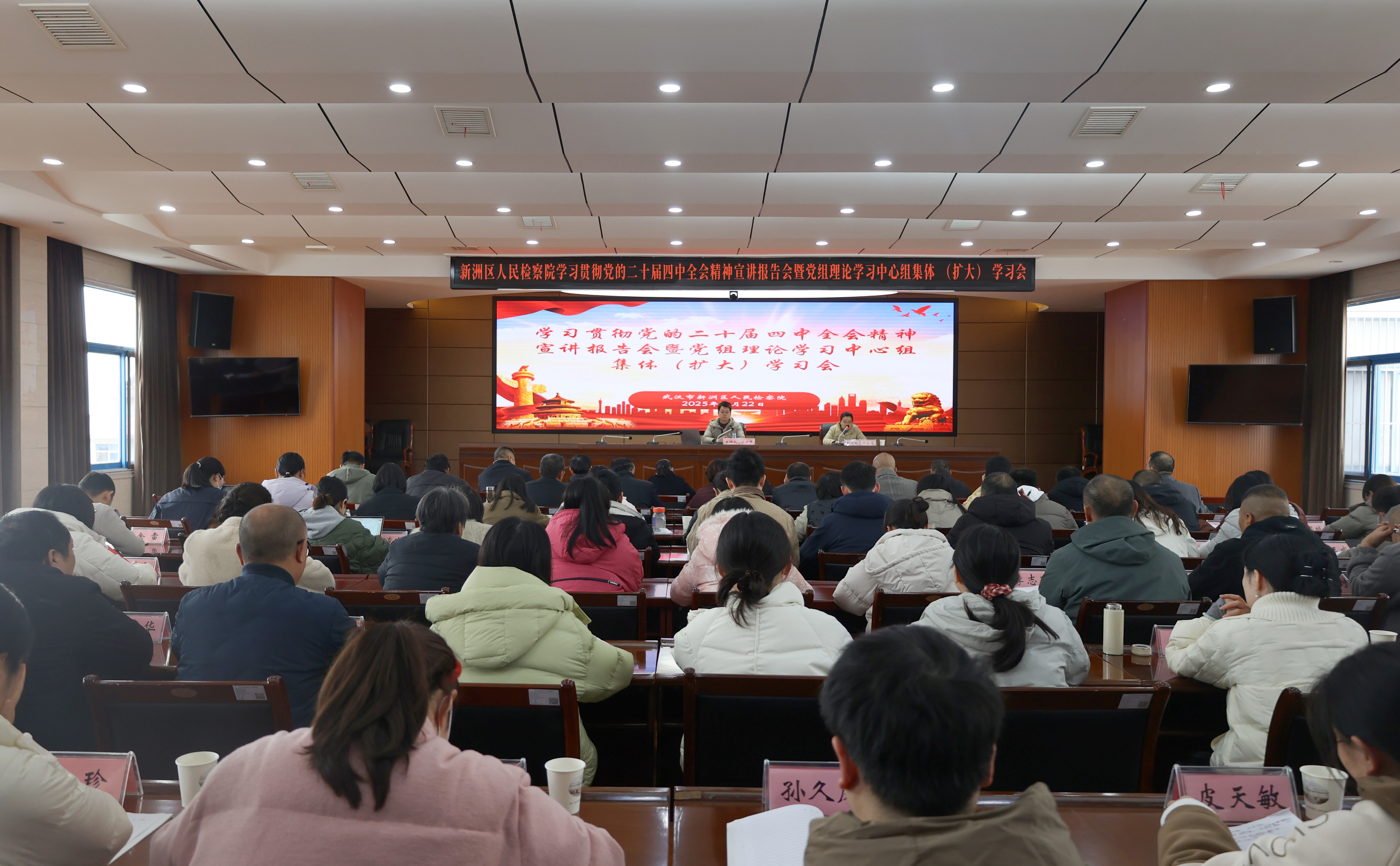 本网讯(通讯员:董婷玉)为深入学习贯彻党的二十届四中全会精神,12月22日下午,新洲区检察院举办学习贯彻党的二十届四中全会精神宣讲报告会暨党组理论学习中心组集体(扩大)学习会。区委宣讲团成员、区委党校高级讲师陈含保作专题宣讲,院党组成员、政治部主任卢永慧主持会议,全院干警参加学习。