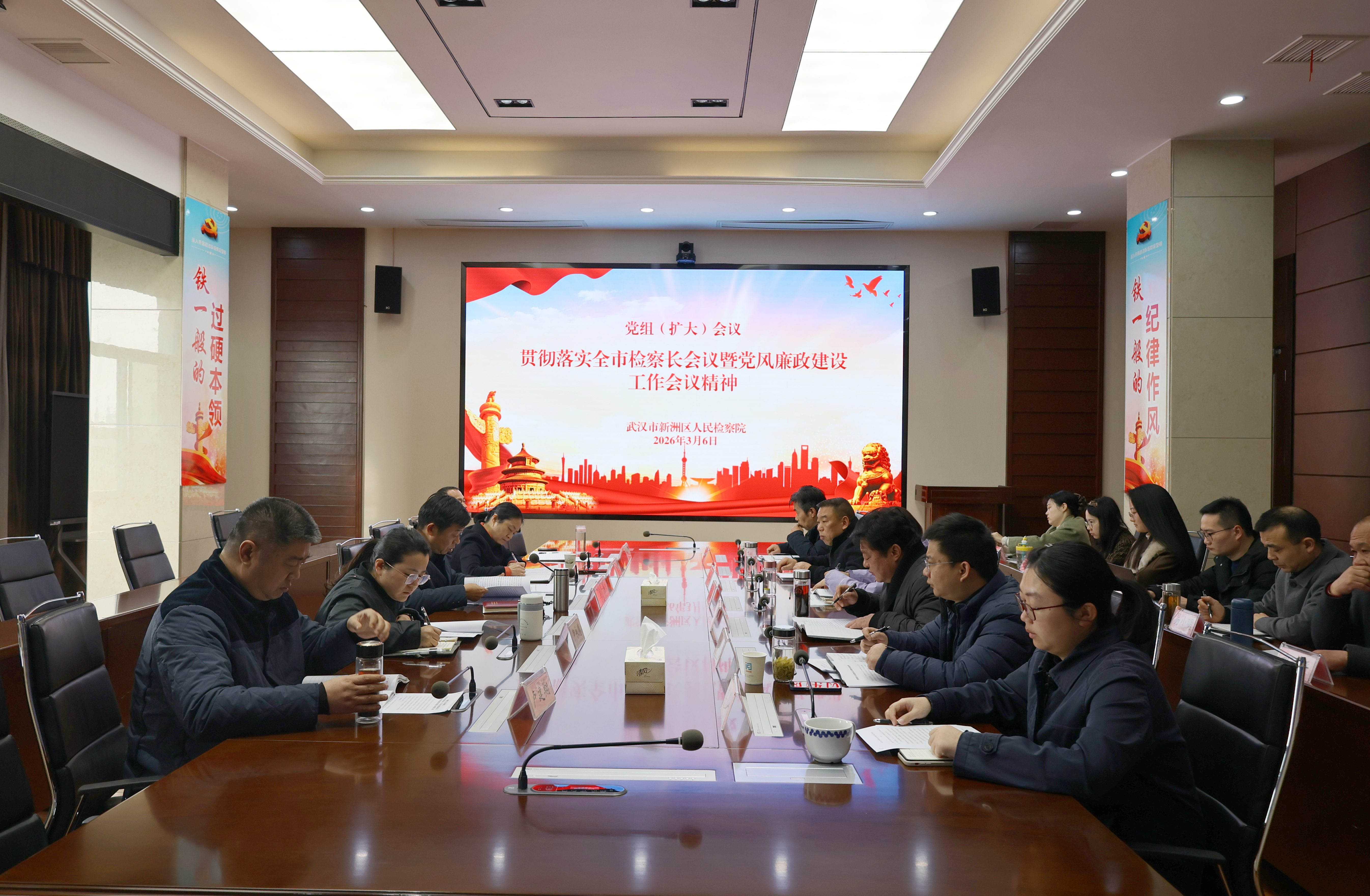 本网讯(通讯员:蔡晨)2026年3月6日,新洲区检察院召开党组(扩大)会,专题学习贯彻落实全市检察长会议暨全市检察机关党风廉政建设工作会议精神,研究贯彻落实措施。全体院领导、各部门负责人参加会议。